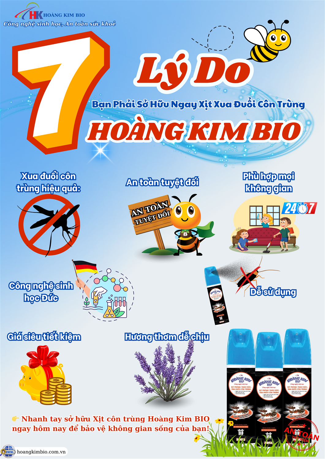 Chọn ngay Xịt xua đuổi côn trùng Hoàng Kim Bio để bảo vệ gia đình khỏi côn trùng và giữ không gian sống luôn an toàn, sạch sẽ nhé!